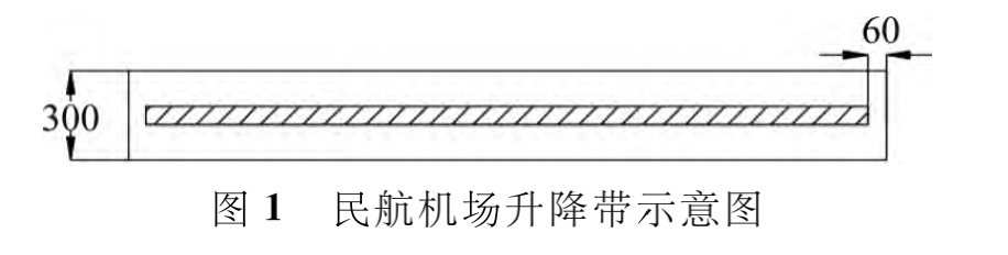 以机场跑道中线为基准,两侧各150m的中线平行线和两端各60m处中线水平延长线的垂直线所构成的场地,升降带范围内不允许有对飞机活动构成危险的物体,起算标高取跑道两端入口中点的较低端标高。