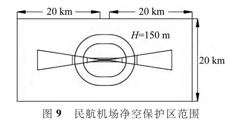 另外,民航总局对净空保护区范围进行了规定:在机场障碍物限制面范围以外、距机场跑道中心线两侧各10km,跑道端外20km的区域内,高出原地面30m 且高出机场标高150m的物体应当认为是障碍物,除非经专门的航行研究表明它们不会对航空器的运行构成危害
