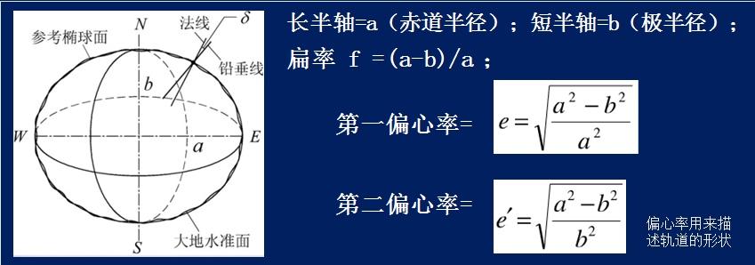 地球椭球体有3个参数,长半轴,短半轴和扁率。可以想象地球椭球体就是一个没有那么扁长的橄榄球的形状。