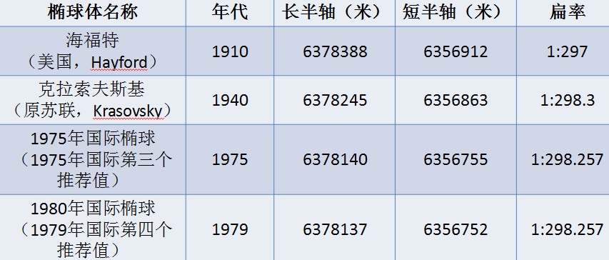 下面展示了一些常用的参考椭球体。我国1952年以前采用海福特椭球体,从1953年起采用克拉索夫斯基椭球体。 1978年我国决定采用新椭球体GRS(1975),并以此建立了我国新的、独立的大地坐标系,对应ArcGIS里面的Xian_1980椭球体。从1980年开始采用新椭球体GRS(1980),这个椭球体参数与ArcGIS中的CGCS2000椭球体相同。