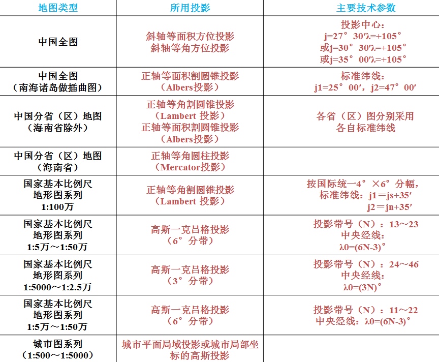 我国规定1:1万、1:2.5万、1:5万、1:10万、1:25万、1:50万比例尺的地形图均采用高斯克吕格投影。该投影在英美等国家被称为横轴墨卡托投影